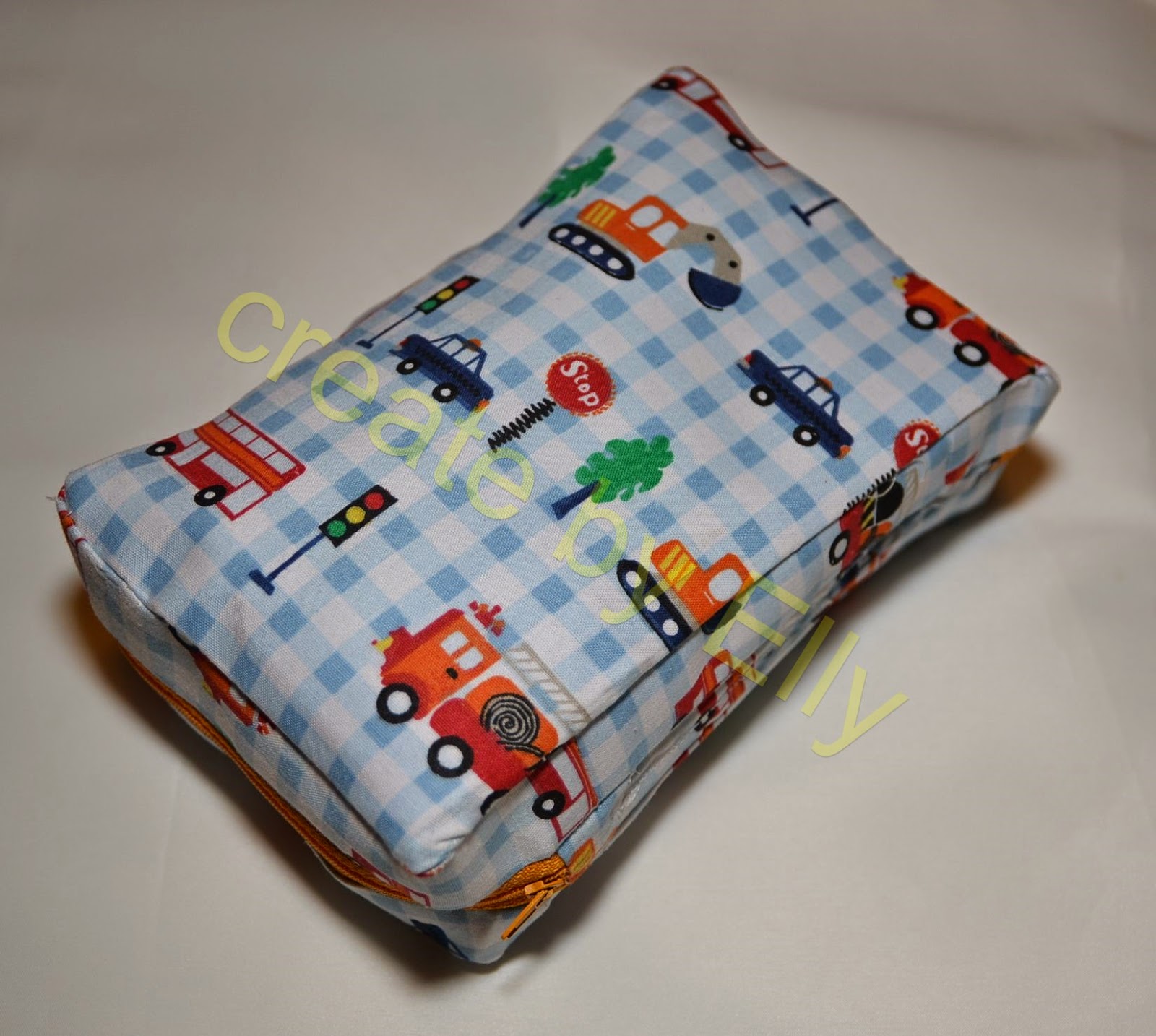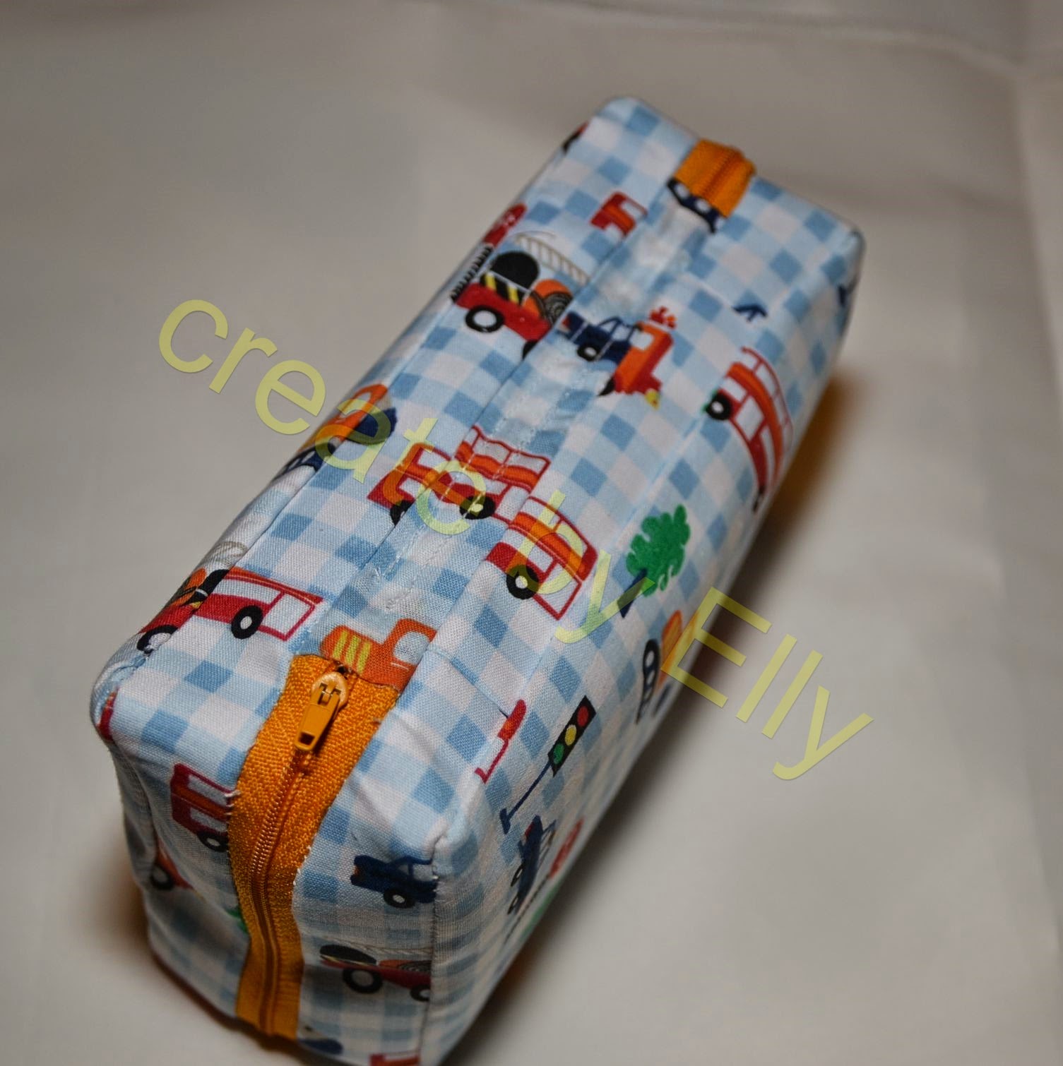 Am folosit material bumbac imprimat 100% si pentru fata si pentru interior. Un femoar de 50 cm, portocaliu si elastic ingust de 0.5 alb si de 2 cm galben. Si bie colorat, imprimat. Dimensiuni: 20/12.5/9 cm.